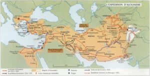 Philippe II et son fils Alexandre le Grand mènent une très vaste politique de conquêtes. En 332 av. JC., Alexandre le Grand conquiert de nombreux territoires perses, dont l’Égypte.